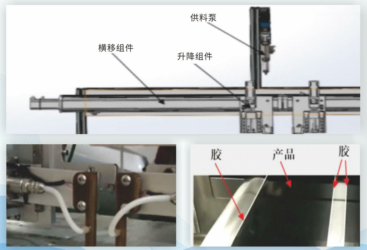 设备机构主要由运动部分(控制水平方向位置的横移组件和控制涂布高度的升降组件),供料部分(螺杆泵和储料桶)和喷头部分(出料头,挡片和负压装置)这三部分组成。在PLC的控制下,可精准控制涂布路径、高度、陶瓷墨水用量与分配,确保涂布与供料的连续一致稳定性。