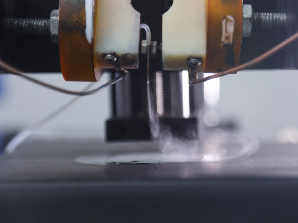 通过压电陶瓷高频震荡形变,驱动单针内部液体射出形成墨滴(短时高频震荡),或均匀雾化喷涂(连续高频震荡)。